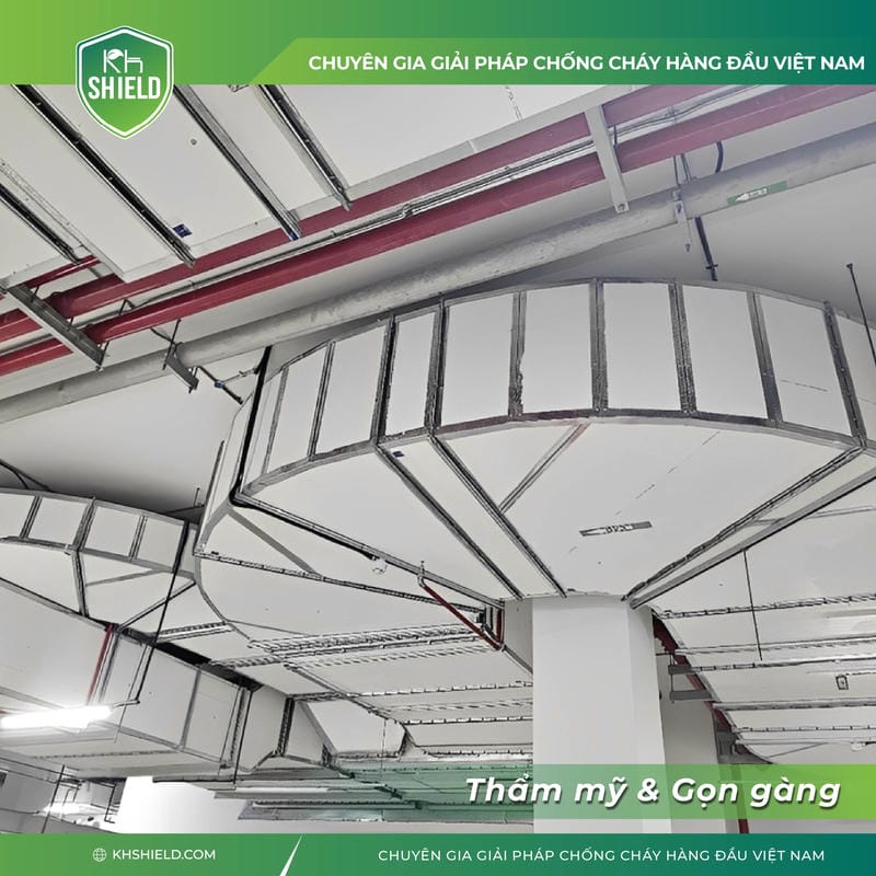 🔥 Độ dày tối ưu: Chỉ cần 02 lớp tấm 14mm là đạt chuẩn EI120 (thay vì phải dùng các kết cấu dày 40–50mm cồng kềnh).