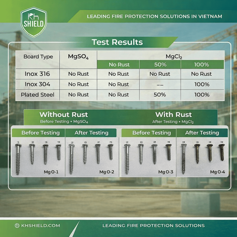 Corrosion observed on 50%–100% of the surface area. - ✅ Screws installed into KHS boards (MgSO₄):