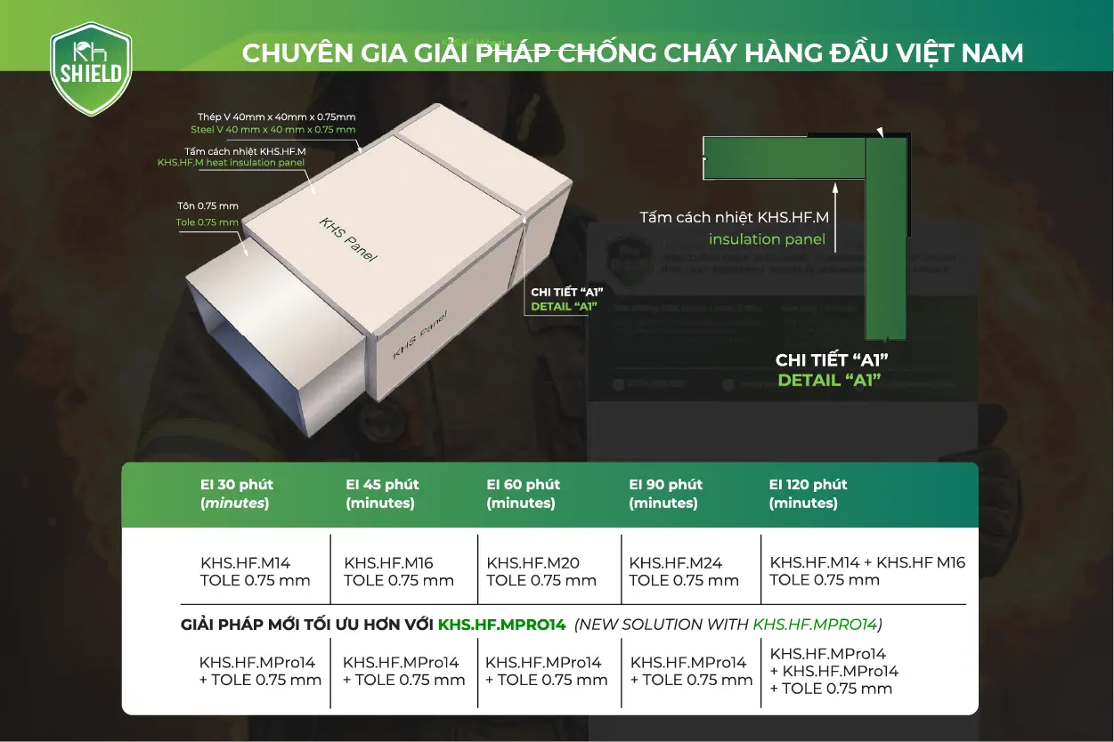 Thông số kỹ thuật tấm cách nhiệt KHS.H.F.M ứng dụng giải pháp ống gió chịu lửa