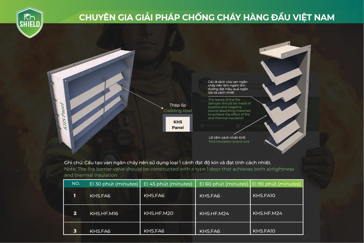 Van ngăn lửa ứng dụng tấm chống cháy, cách nhiệt KH Shield