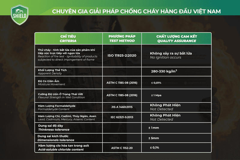 KẾT QUẢ THỬ NGHIỆM SẢN PHẨM TẤM CÁCH NHIỆT FIRESHIELDPRO KHS.HF.MPS48